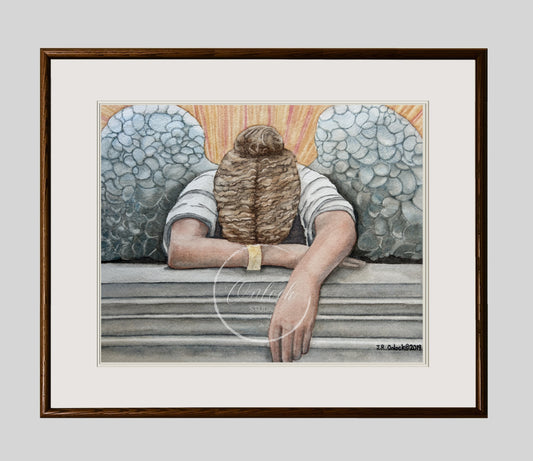 Print, Lament of the Guardian, Open Edition from an original painting, angel statue, see separate listing if purchasing the digital version